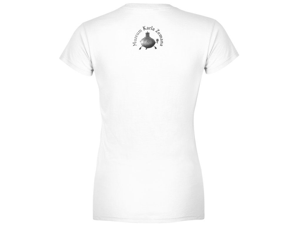 Bílé dámské bavlněné tričko s potiskem černých létajících strojů z filmů Karla Zemana.